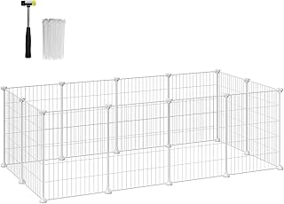 SONGMICS Jaula para Mascotas, Valla MetÁlica para HÁmster, Conejitos, Parque de Mascotas en Bricolaje, para Animalitos, Blanco LPI01W